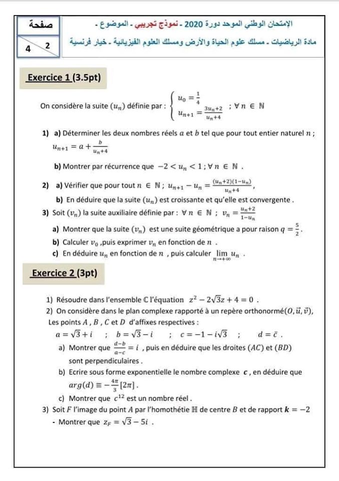 Bac 2020 نمودج مقترح باكالوريا شعبة علوم تجريبية رياضيات Facebook